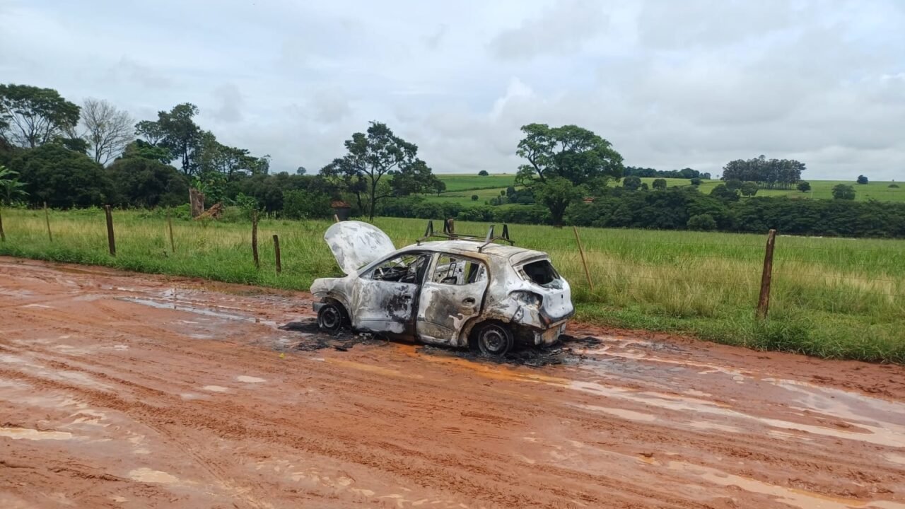 Carro de prestadora de serviço da CPFL pega fogo e fica destruído próximo ao bairro Moinho, em Birigui