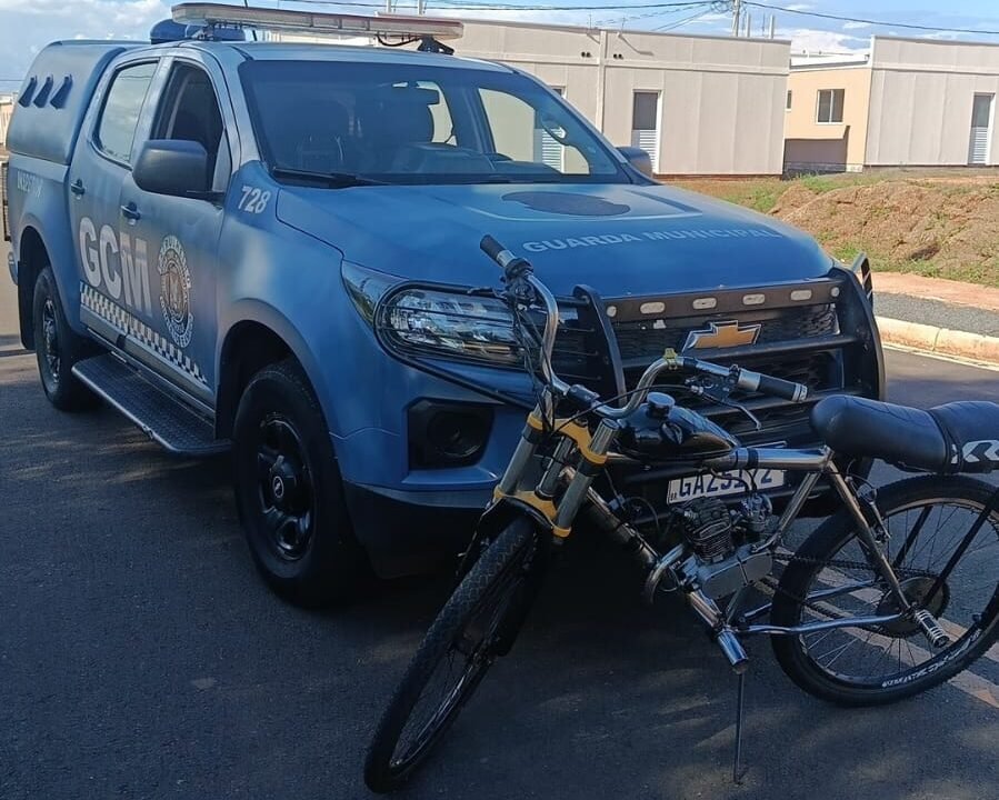 Bicicleta motorizada é apreendida em ação conjunta da GCM e PM no Residencial Oliveiras em Birigui