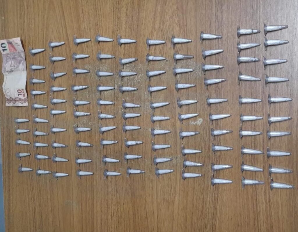 Na revista, foram localizados 105 microtubos contendo cocaína, além de uma quantia em dinheiro. Questionado, o adolescente confessou a prática do ato infracional relacionado ao tráfico.