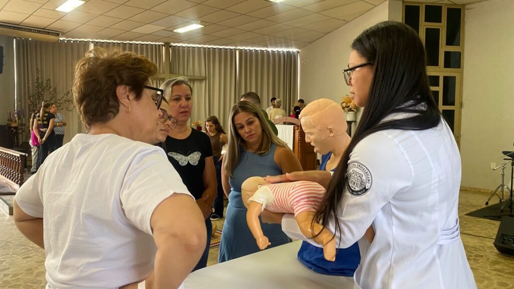 Durante a formação, foram abordados conteúdos como reconhecimento de situações de emergência, reanimação cardiopulmonar (RCP) pediátrica, manobra de Heimlich, controle de sangramentos — incluindo epistaxe (sangramento nasal), posicionamento seguro da vítima e manejo de acidentes escorpiônicos.