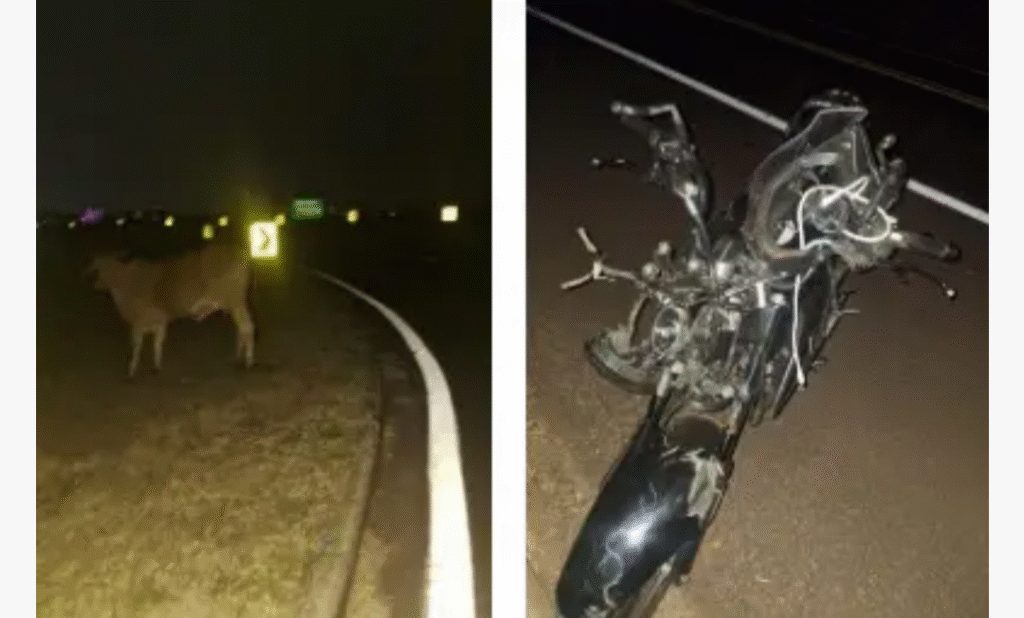 Amigos de motociclista que bateu moto em bovinos organizam rifa solidária para reforma da motocicleta