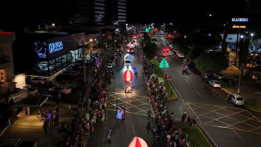 Araçatuba iniciou oficialmente as festividades de fim de ano nessa sexta-feira (12), com o Natal Iluminado 2025, na Praça Rui Barbosa, e a tradicional Parada de Natal do Atamor. O evento reuniu apresentações culturais, música, iluminação especial e a chegada do Papai Noel.