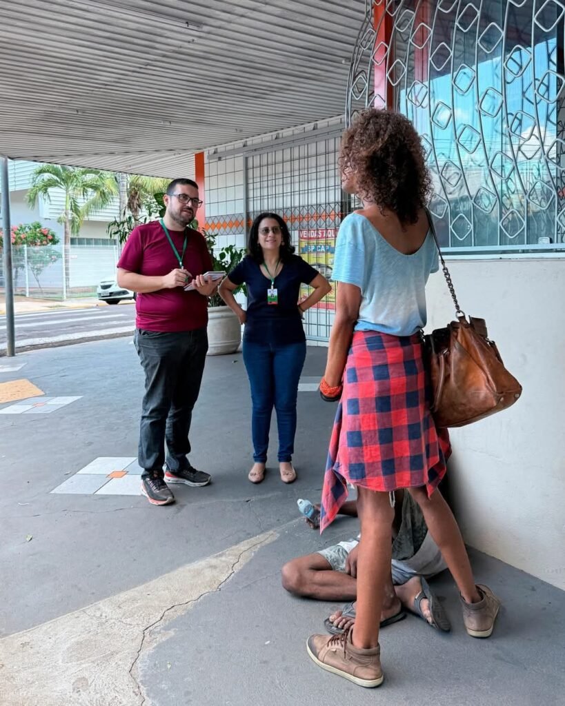 Durante a abordagem, a equipe fez orientações visando assegurar o acesso desses cidadãos atendidos aos direitos e serviços socioassistenciais disponíveis no município, além de sensibilizá-los quanto ao processo de saída das ruas.
