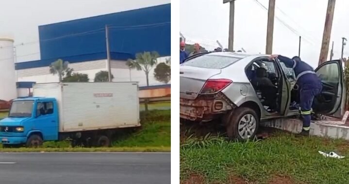 Mulher e dois homens ficam feridos após acidente entre carro e caminhão em Birigui