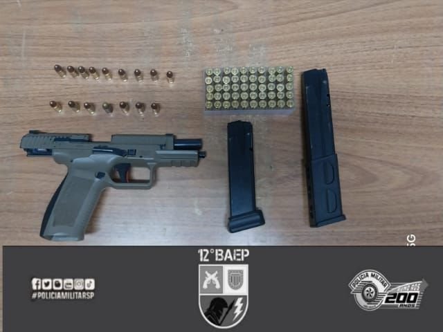 Uma equipe do 12º Batalhão de Ações Especiais de Polícia (BAEP) apreendeu uma arma de fogo e munições na manhã desta sexta-feira (6), durante o cumprimento de um mandado de busca e apreensão em um condomínio residencial, localizado na Rua Adelmo Scavassa, no Condomínio Costa Rome, em Araçatuba.