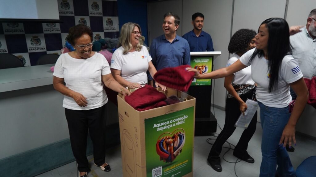 O Fundo Social de Solidariedade (FSS) de Araçatuba iniciou a Campanha do Agasalho 2026. O lançamento oficial foi realizado quinta-feira (2), no Salão Azul do Paço Municipal e contou com grande arrecadação de mantas e pares de meia, doados por servidores municipais, do Grupo Legendários e empresas.