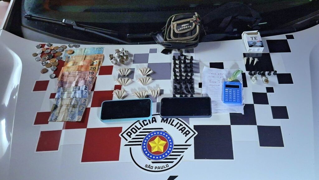 Ao chegarem nas proximidades do imóvel, os policiais visualizaram um homem conhecido pelo vulgo “Costela”, saindo da residência. Ao notar a presença da viatura, ele retornou rapidamente para o interior do imóvel, sendo abordado em seguida. Com ele, os policiais localizaram uma pochete contendo diversas porções de entorpecentes, dinheiro em espécie e dois aparelhos celulares.