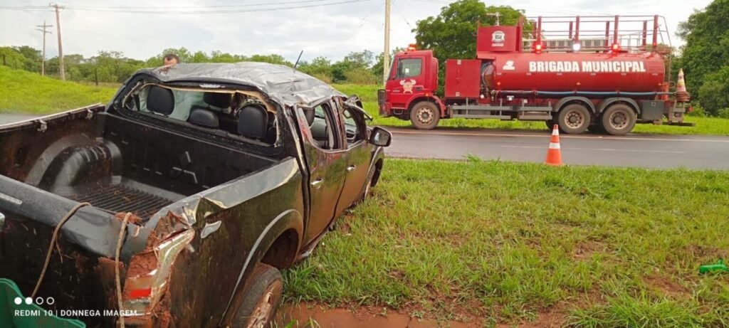 Caminhonete ocupada por família capota na Marechal Rondon