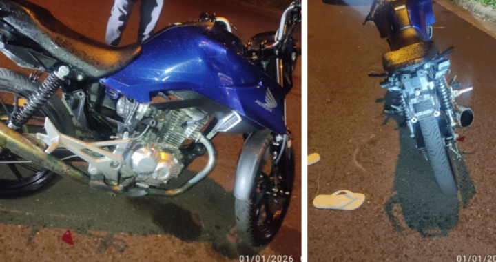 Motocicleta furtada é recuperada pela PM após acidente de trânsito no Portal da Pérola, em Birigui