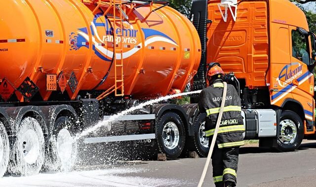 Simulado de acidente com carga perigosa mobiliza equipes na SP-463 em Araçatuba