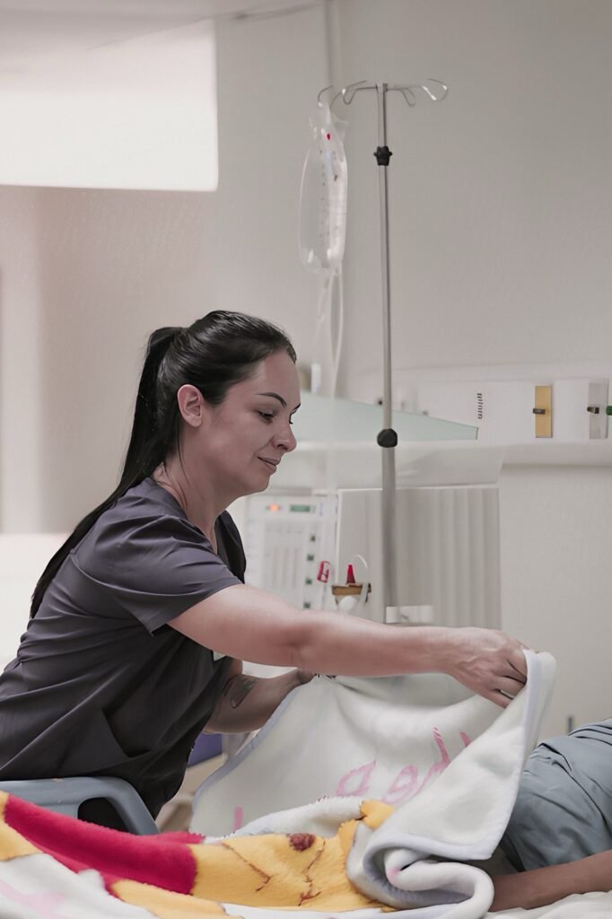 Ariadne sublinha com destaque a necessidade do olhar humanizado em toda a equipe de enfermagem da Santa Casa. “Por vezes, as necessidades do paciente vão além dos medicamentos e procedimentos hospitalares. Ele pode precisar de uma conversa, um toque, que sua família seja acolhida”, detalha. Para ela, é fundamental também entender se a linha de cuidados que esse paciente tem em casa e se restrições pessoais podem ter contribuído para a piora do caso ou estão dificultando o tratamento. “A enfermagem, portanto, vai além dos cuidados técnico-práticos. O olhar e o toque fazem a diferença”.