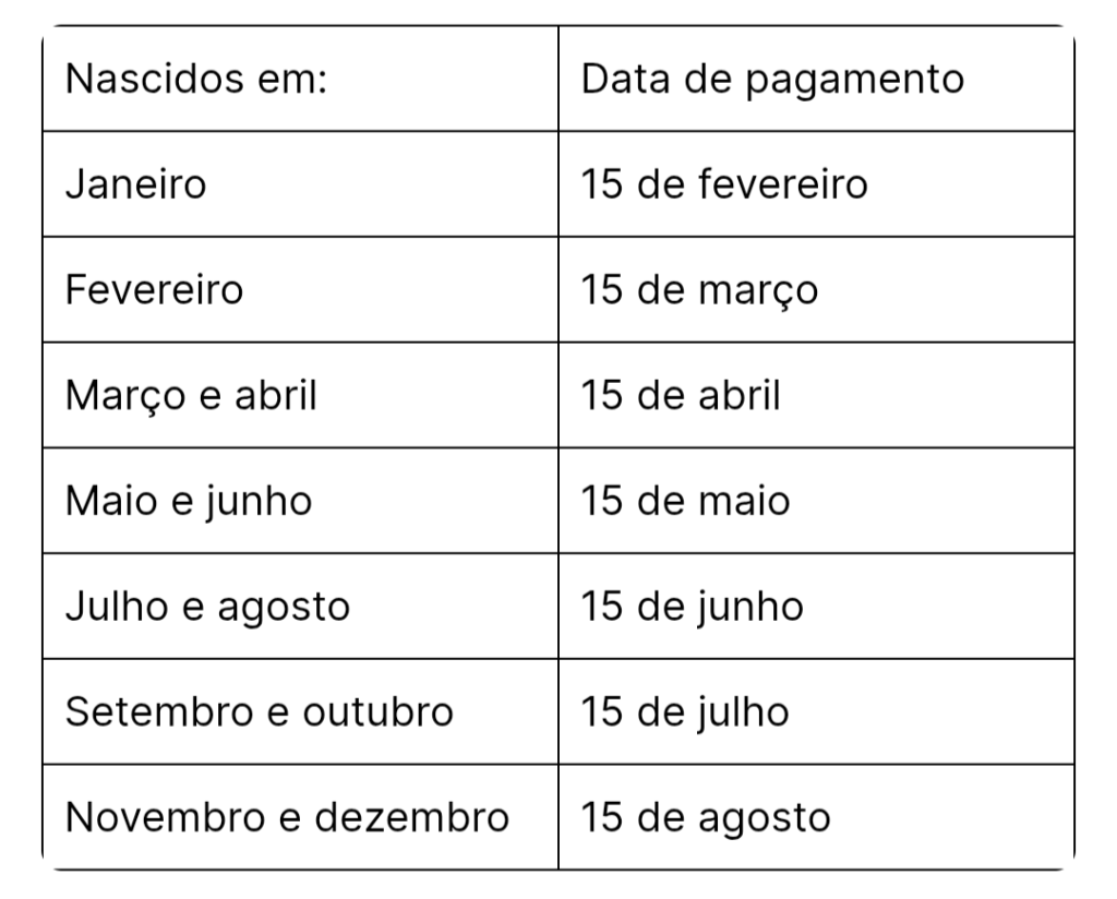 Confira as datas de pagamento: