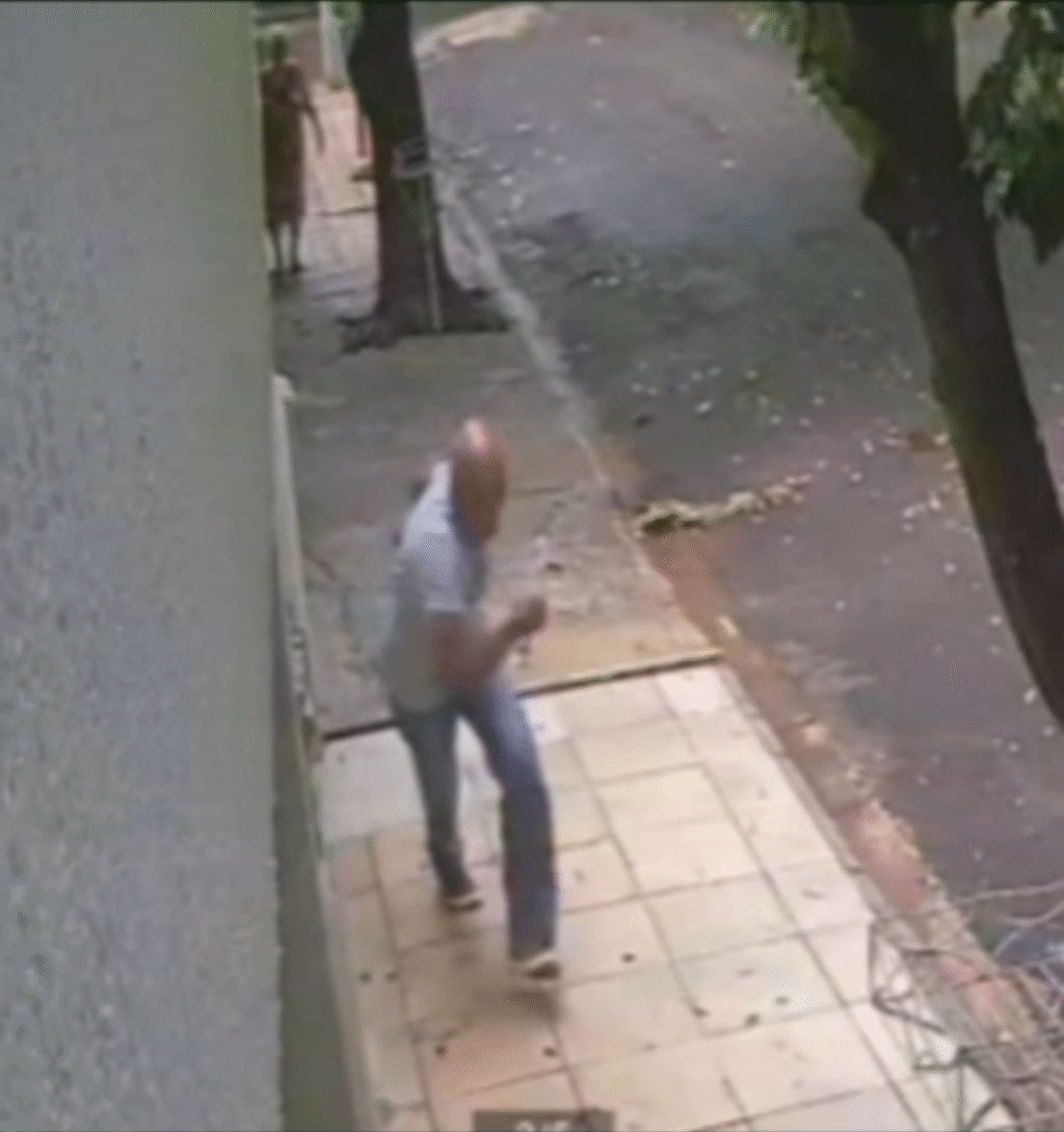 De acordo com as imagens registradas por câmera de segurança de uma casa vizinha, o criminoso passa algumas vezes em frente à residência e resolve entrar para cometer o crime. Ele só não esperava que a dona da casa, uma idosa estivesse no local.