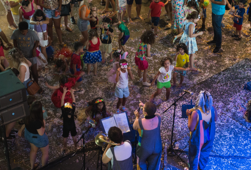 Os pequenos foliões têm espaço garantido com o Ateliêzinho de Carnaval, conduzido por Elizana Alves, que transforma roupas antigas em fantasias autorais, cheias de brilho e criatividade. Além disso, a Brinca Folia propõe atividades lúdicas como a construção de brinquedos sonoros e máscaras, criando um ambiente de experimentação e brincadeira.