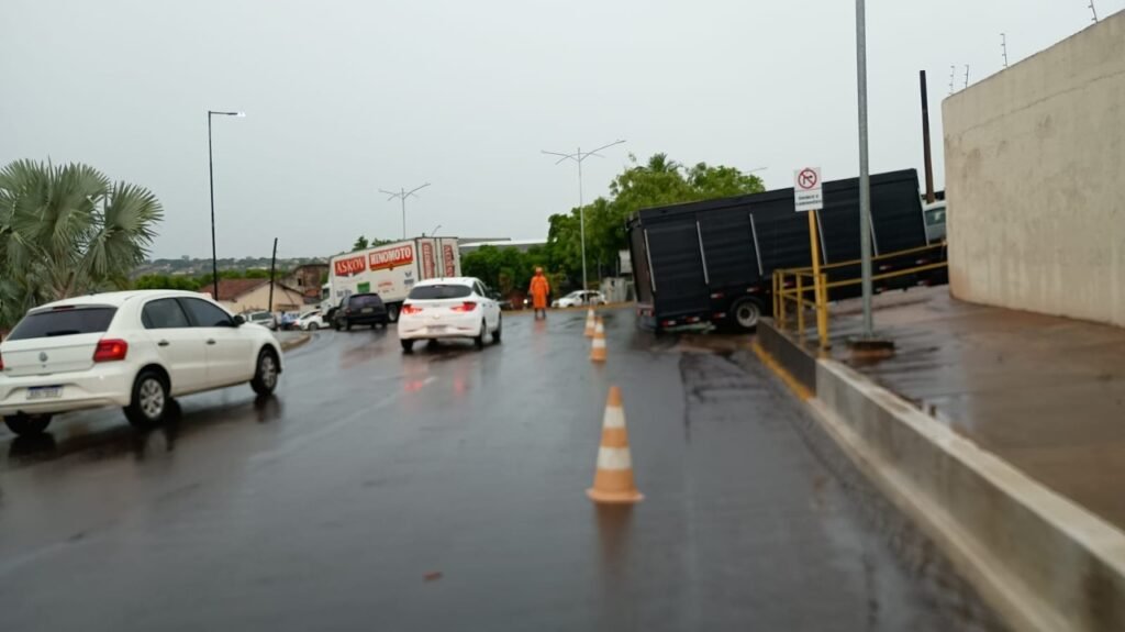 O principal ponto de atenção foi o cruzamento da Avenida Waldir Felizola de Moraes com a Rua Floriano Peixoto, nas proximidades da rotatória da Rua dos Fundadores. Um caminhão ficou imobilizado no local, o que levou a equipe a desviar o tráfego de forma preventiva, evitando acidentes.