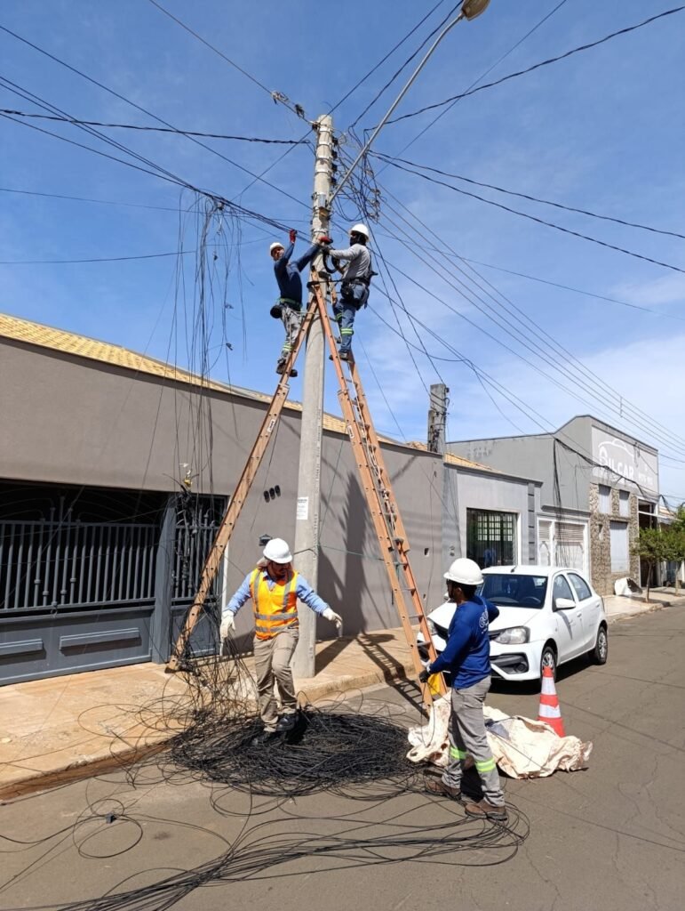 A Defesa Civil, a Guarda Civil Municipal e a CPFL deram sequência à Operação Fio Solto, retirando mais de 700 quilos de cabos irregulares de internet e telefonia no bairro Quemil, em Birigui. A ação integra um trabalho contínuo de fiscalização iniciado pelo secretário de Segurança, Vagner Freire, com o objetivo de reduzir riscos à população e organizar a fiação espalhada pela cidade.