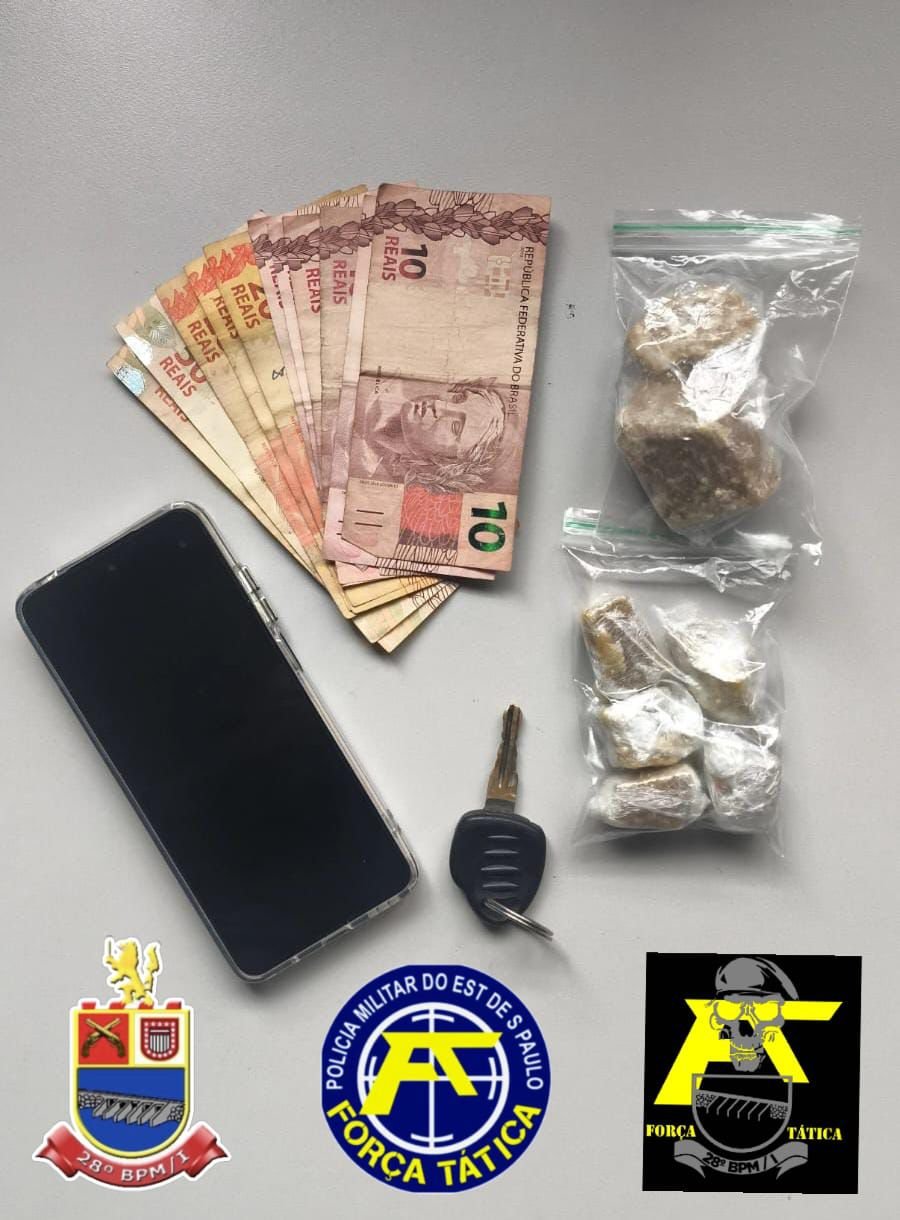 Durante a busca veicular, os policiais localizaram, no interior de uma bolsa posicionada ao lado do freio de mão, porções de crack fracionadas e embaladas para a venda, que totalizaram aproximadamente 111 gramas da substância, além da quantia de R$ 270,00 em dinheiro, em notas diversas.