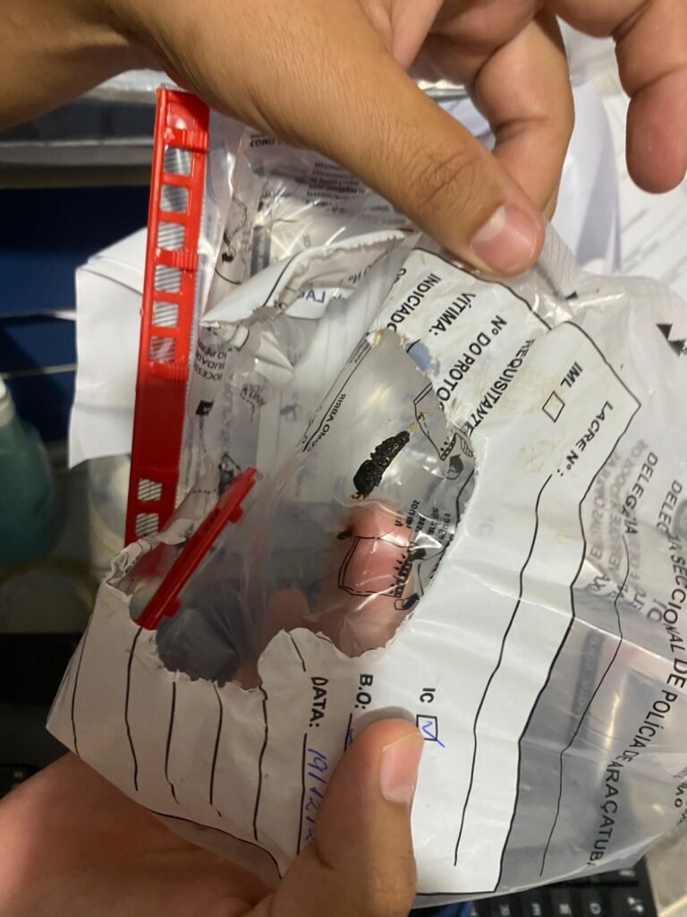 As diligências também levaram os policiais até a residência de H., onde foram localizados outros vestígios. Entre eles, um chinelo com resíduos de grama compatíveis com os locais dos furtos, além de uma embalagem de refrigerante subtraída do Centro de Convivência. Imagens de câmeras de segurança da Associação Mirim ainda indicam que o autor utilizava um calçado com características semelhantes ao apreendido.