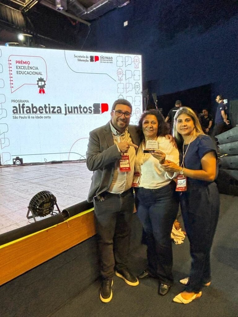 Na terça-feira (17), o município esteve representado na capital paulista em um importante momento de celebração e reconhecimento na área da educação. O prefeito Hairtinho participou da cerimônia acompanhado da secretária municipal de Educação, Shirlei Quiderolli Franco de Mello, e da professora Fabiana dos Santos Gonçalves Chiderolli, articuladora municipal do Programa Alfabetiza Juntos SP.
