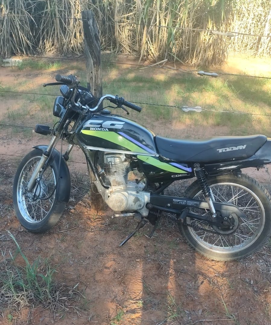Durante o patrulhamento nas proximidades, dois motociclistas foram avistados e, ao perceberem a aproximação da viatura, fugiram em alta velocidade. Um deles conduzia uma Honda CG 125, que estava sem emplacamento visível, e seguiu por uma estrada de terra na tentativa de despistar a equipe.