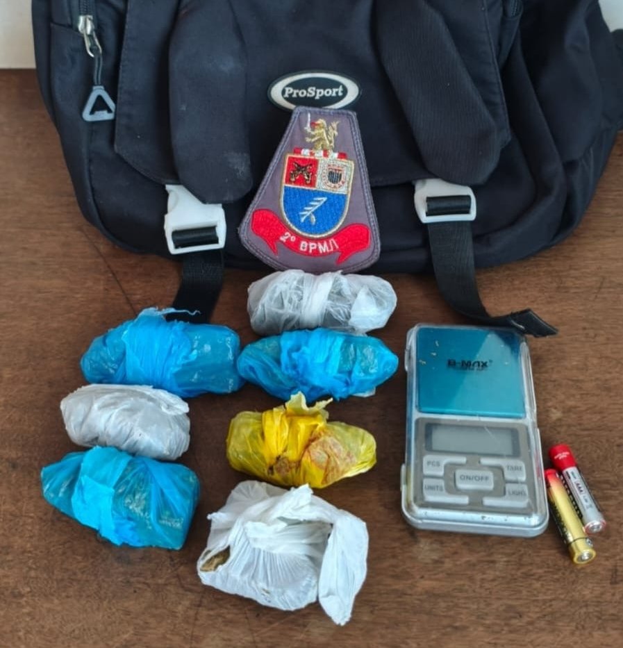 Após ser contido, o próprio jovem informou que havia entorpecentes armazenados em uma mochila dentro da casa. Durante a busca, os policiais localizaram porções de substância semelhante à maconha, que totalizaram 148 gramas, além de uma balança de precisão. Segundo o autor, o material seria o motivo da discussão com a mãe.