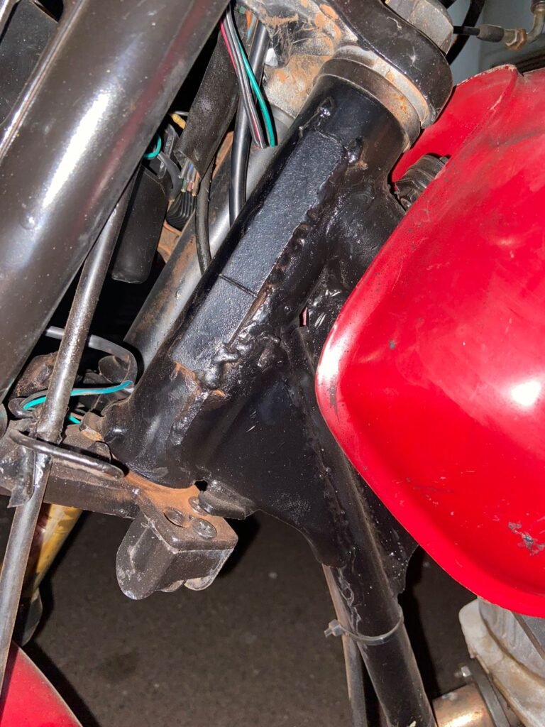 Com as características do indivíduo, foi possivel abordá-lo, onde durante busca pessoal, com o mesmo nada de ilícito foi localizado. Porém, ao verificar a moto que estava em sua posse, foi constatado que o veículo tinha sobre o número de chassi uma placa de ferro soldado, para dificultar a identificação.