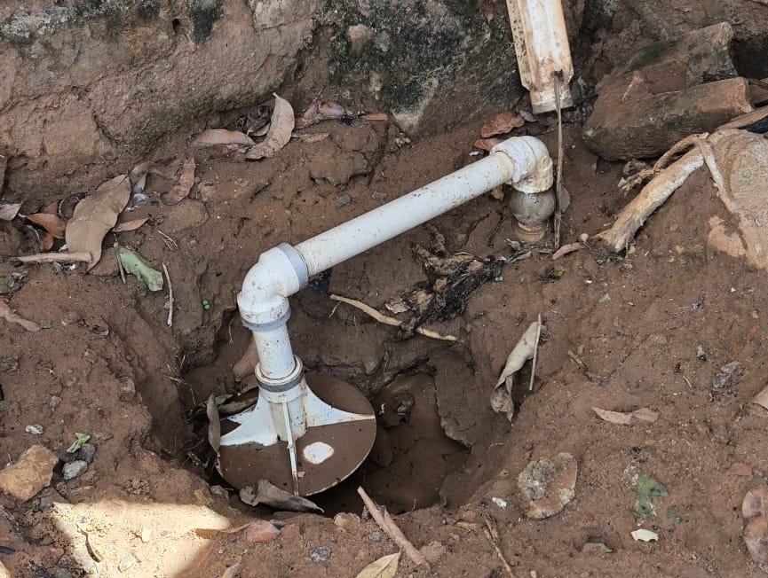 De acordo com a ocorrência, o cavalete do imóvel não possuía hidrômetro e a água, que deveria estar cortada, estava sendo fornecida por meio de uma ligação direta feita da rede pública para abastecer a residência.