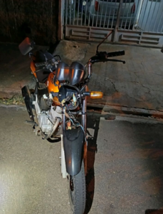 No local indicado, na Rua Gumercindo Pereira das Chagas, os agentes encontraram o veículo estacionado em frente a um bar, com danos significativos na lateral esquerda. Populares informaram que o condutor da motocicleta havia fugido há poucos instantes em direção à Avenida José Masson.