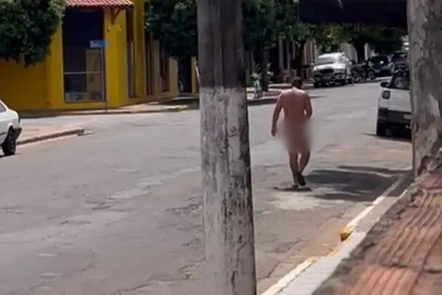 Um homem foi flagrado andando completamente nu pela Avenida Washington Luiz, em Guararapes (SP), na tarde deste sábado (25). A cena inusitada chamou a atenção de quem passava pelo local e foi registrada em vídeo por um morador, que compartilhou as imagens nas redes sociais e em grupos de aplicativos de conversa da cidade e região.