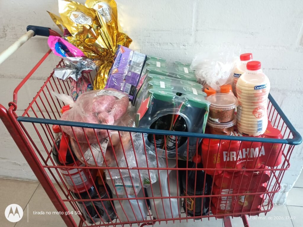 Ainda conforme o relato, o suspeito foi abordado no estacionamento ao tentar sair com um carrinho cheio sem efetuar o pagamento. Durante a ação, ele tentou fugir, sendo necessário o uso de algemas para contê-lo.