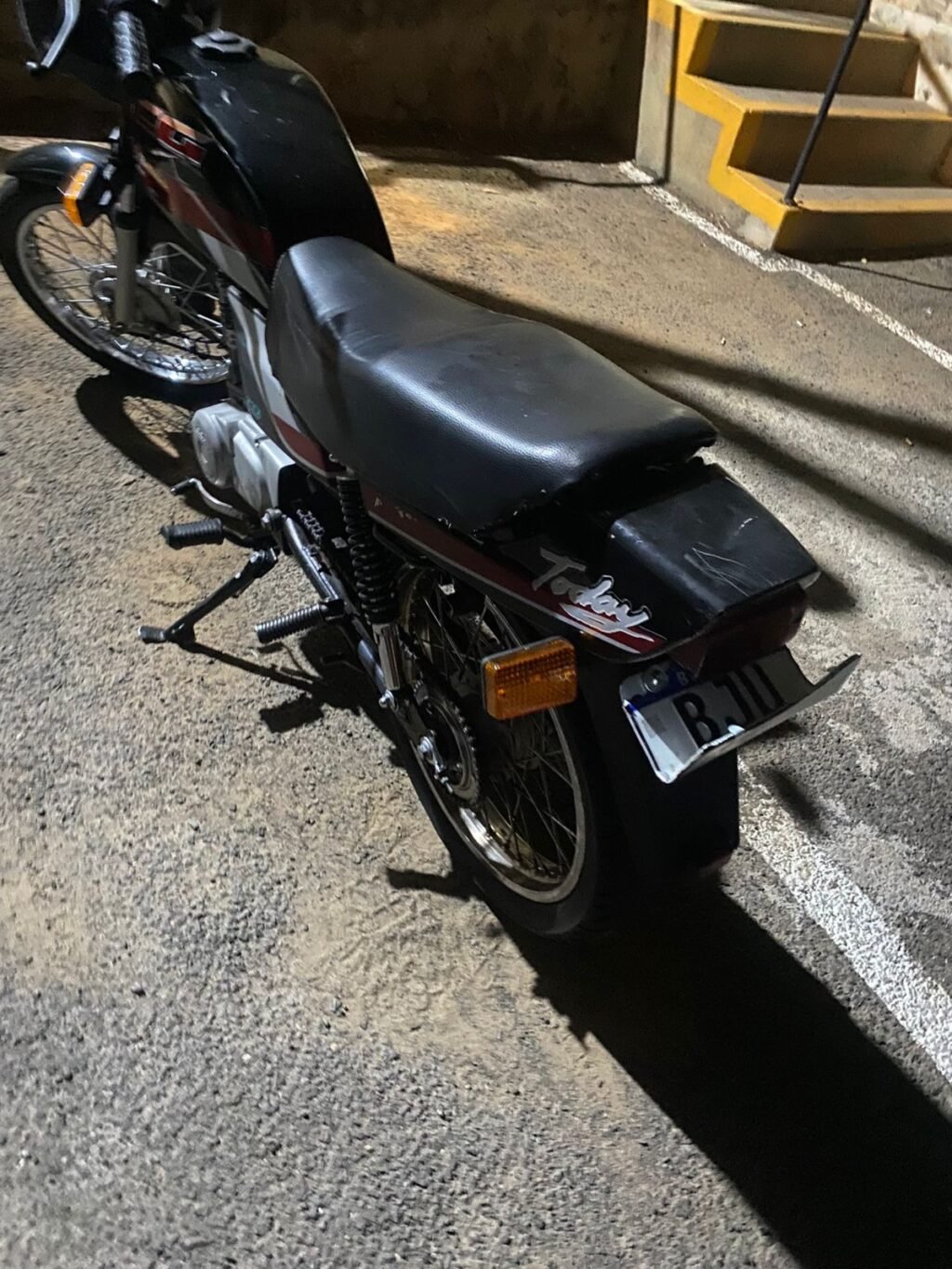 Após breve acompanhamento, o indivíduo foi localizado e abordado em sua residência. Durante a averiguação, os policiais constataram que a motocicleta estava com a placa dobrada, com o objetivo de ocultar os sinais identificadores do veículo.