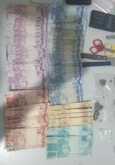 No local indicado, os militares encontraram uma grande quantidade de entorpecentes e apetrechos utilizados para o tráfico, sendo apreendidos 82 microtubos com cocaína, 162 papelotes de crack, cinco porções de maconha do tipo “dry”, 14 porções de maconha do tipo “boliviana gold”, dois papelotes com cocaína em plástico “zip lock”, além de R$ 964,20 em dinheiro, duas tesouras, duas facas de serra e uma balança de precisão.