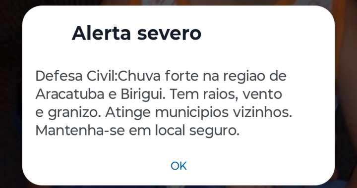 Defesa Civil emite alerta de chuva forte para Araçatuba e Birigui