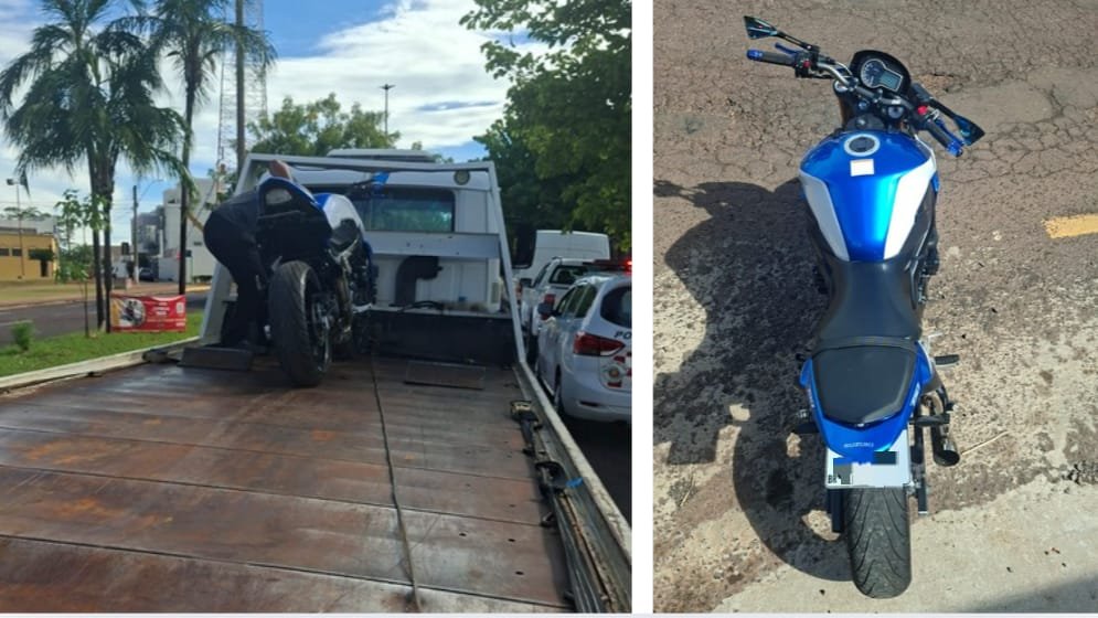 Durante patrulhamento preventivo realizado pela Polícia Militar nesta quarta-feira (28) pela Avenida Elclides Miragaia, no sentido bairro/centro, uma equipe policial avistou uma motocicleta de grande cilindrada que aparentava estar sem a devida visibilidade da placa de identificação.