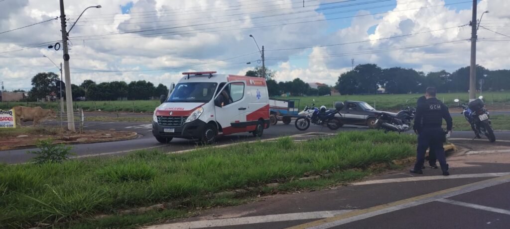 Uma motociclista de 36 anos ficou ferida após um acidente de trânsito registrado na tarde desta quinta-feira (9), por volta das 14h24, no cruzamento da Avenida Vitória Régia com a Avenida Thomaz Lopes Fernandes.