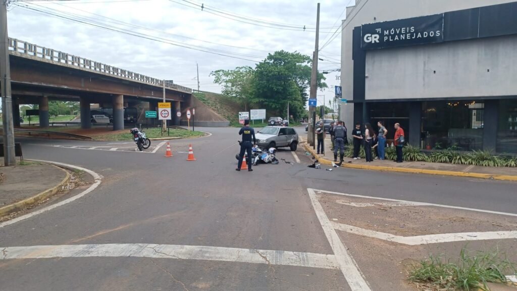 Motociclista fica gravemente ferido após colisão com carro em cruzamento de Araçatuba