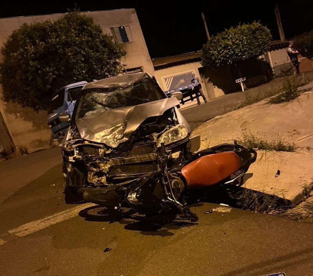 O condutor da motocicleta ficou em estado grave e foi socorrido para a Santa Casa da cidade. Ele estava com uma passageira que ficou em estado leve e condutor do carro deixou o local antes da chegada das autoridades.