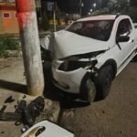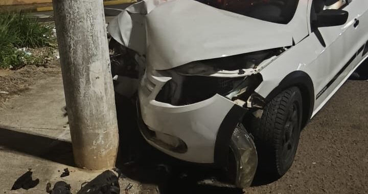 Jovem de 19 anos perde controle do carro e bate em poste durante a madrugada em Birigui