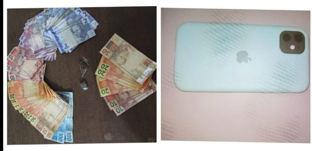 Já na delegacia, durante busca pessoal realizada por uma policial feminina, foi localizada uma quantia maior em dinheiro escondida junto ao corpo da mulher. Posteriormente, compareceram ao plantão a moradora do imóvel e seu filho, um adolescente, alegando que o celular, parte do dinheiro e uma das porções da droga pertenciam ao menor.