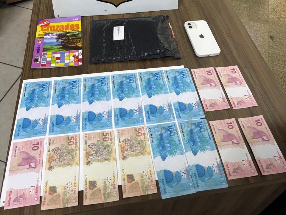 No total, foram encontradas 8 cédulas de R$100, 5 cédulas de R$10 e 3 cédulas de R$50, totalizando R$1.000,00 em notas com características de falsificação. O dinheiro foi encaminhado para exame pericial.