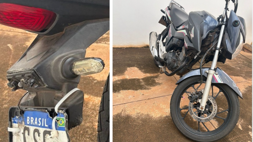 Durante patrulhamento, os policiais perceberam que a motocicleta conduzida por ela estava com a placa presa por “enforca gato” e divergente do número do chassi. A mulher afirmou ter perdido a placa original e usado outra emprestada por um amigo, além de admitir não possuir CNH.