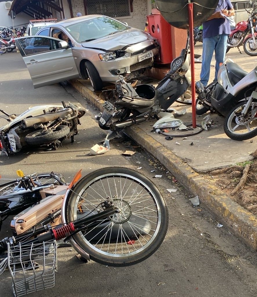 Uma mulher perdeu o controle da direção de um veículo e colidiu em várias motos que estavam estacionadas em um bolsão no Supermercado Rondon da Cobrac, na região central de Araçatuba. O caso foi registrado na tarde desta quinta-feira (23).