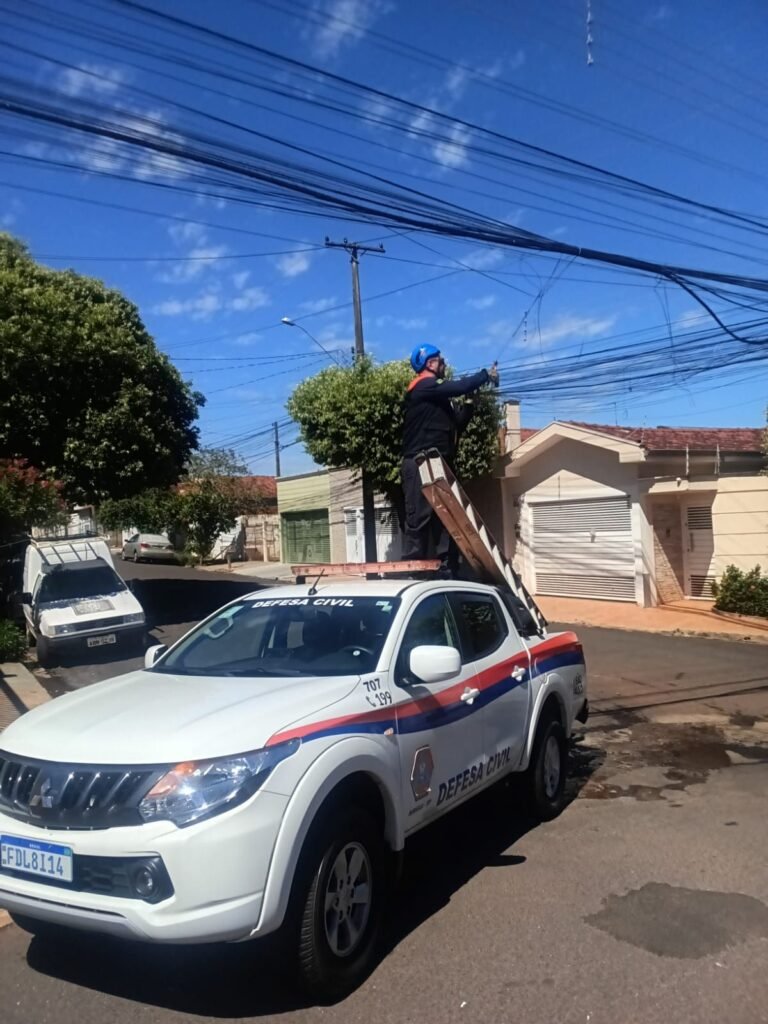 Durante a operação, equipes da Defesa Civil percorreram os bairros Parque Residencial Laluce, Jardim Vale do Sol e Novo Jardim Stabile, onde foram recolhidos diversos fios de internet e telefonia que estavam soltos nas vias públicas. A situação representava risco tanto para condutores de veículos quanto para pedestres que circulam pelas ruas e calçadas.