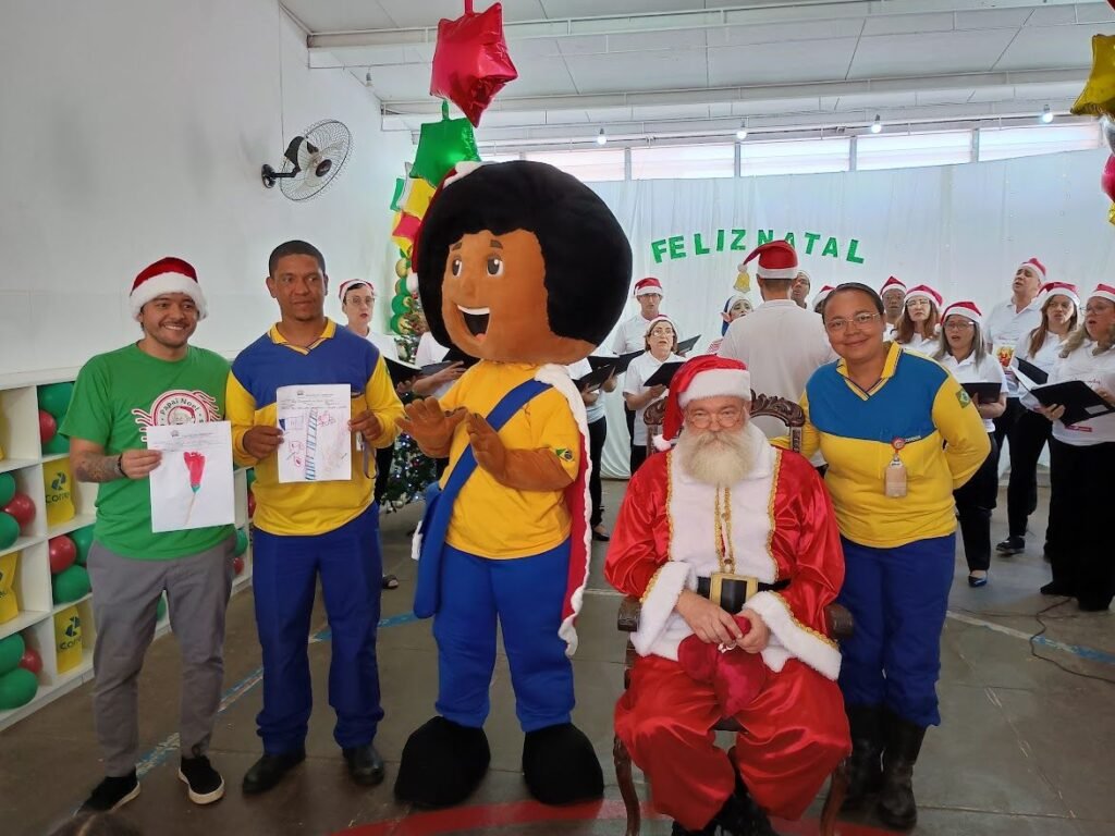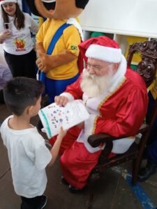 No evento, as crianças da instituição entregaram suas cartinhas ao Bom Velhinho, que esteve acompanhado do superintendente estadual dos Correios, Guilherme Alves Barbosa, do Coral Encanto Postal, e da carismática mascote carteira Maria Cristina, a “carteirita”.