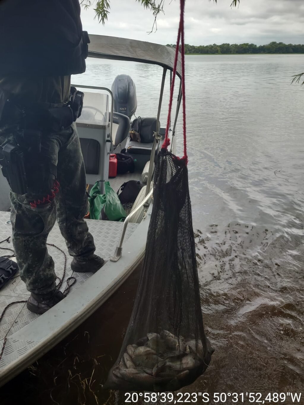 Durante policiamento ambiental náutico continental, no contexto da Operação “Pós-Carnaval”, a equipe realizava patrulhamento nas proximidades da foz do Córrego Ferreirinha quando avistou um indivíduo em uma embarcação praticando pesca com o uso de tarrafa.