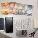 A equipe apreendeu uma quantia de R$ 55,00 que estava em posse do acusado. Todos os dados, objetos e envolvidos foram levados ao Plantão Policial, onde o escrivão registrou os fatos.