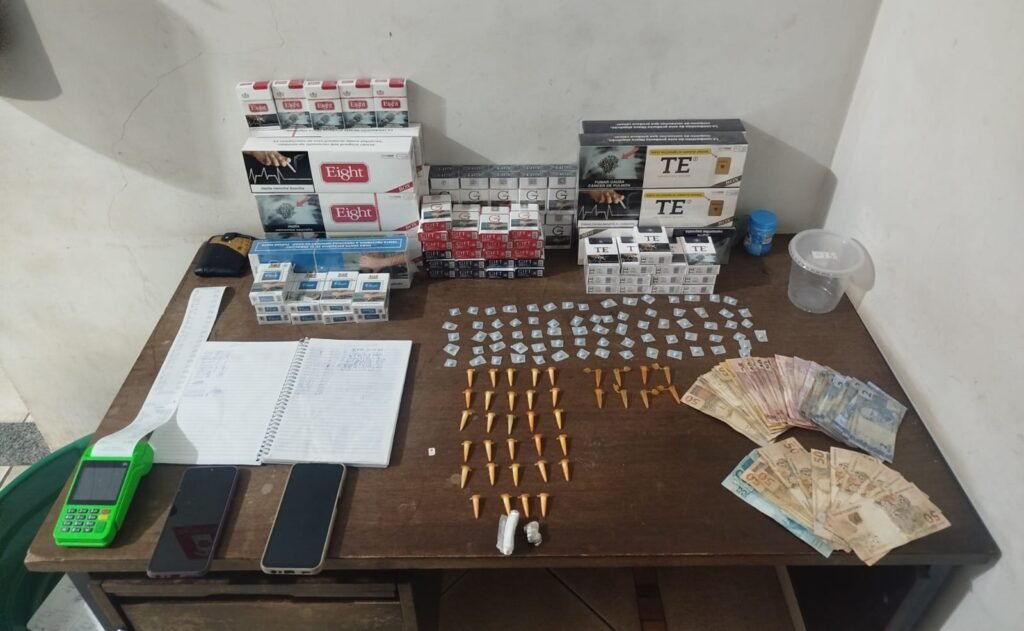 Durante as buscas no salão comercial, os policiais localizaram um recipiente contendo diversos pinos de substância análoga à cocaína, além de um invólucro com a mesma droga. Também foram apreendidos dinheiro em espécie, aparelhos celulares, uma máquina de cartão, um caderno com anotações, comprimidos de estimulante sexual, um chip telefônico e grande quantidade de maços de cigarros de marcas diversas.