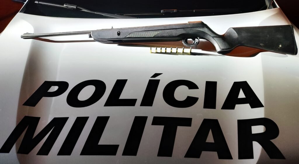 Durante patrulhamento pela via indicada, os policiais Cabo Cristiano e Soldado Fabrício, localizaram o suspeito a cerca de 400 metros do bar, realizando a abordagem e o desarmamento. O indivíduo foi identificado como um homem de 50 anos, que portava uma espingarda marca CDC adaptada para calibre .22, municiada com um cartucho, além de sete cartuchos intactos, R$ 56,00 em dinheiro e um celular.