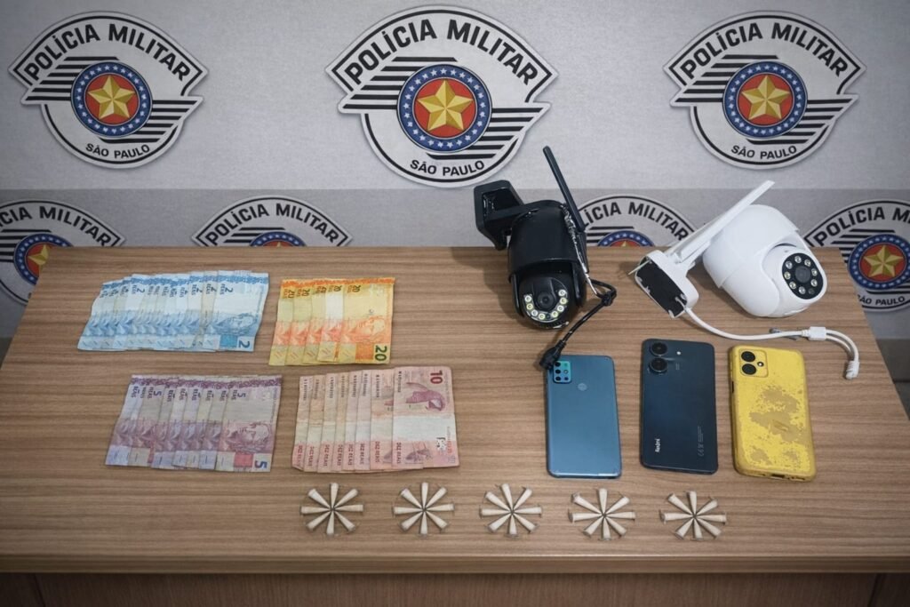 Os quatro suspeitos correram ao notar a aproximação policial, mas foram alcançados e abordados. Com um homem maior de idade, já conhecido nos meios policiais por antecedentes relacionados ao tráfico, foram localizados 29 pinos de substância análoga à cocaína, além de dinheiro em espécie e um aparelho celular. Com os demais envolvidos, todos adolescentes, foram apreendidos valores em dinheiro e celulares.
