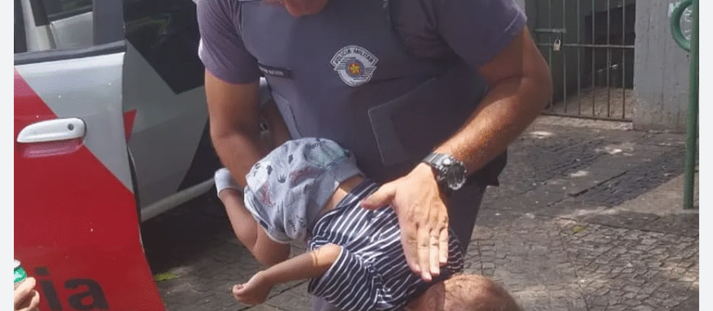 Ao chegar rapidamente ao local, os policiais encontraram o pequeno de apenas 8 dias, nos braços do pai, já com sinais de asfixia e pele arroxeada. Com técnica e calma, o Cabo PM Lima realizou a manobra de Heimlich adaptada para bebês, conseguindo desobstruir as vias respiratórias da criança.